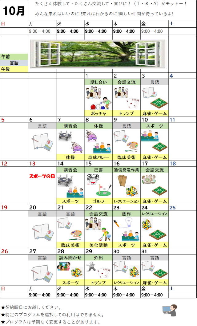 10月のプログラム表です。