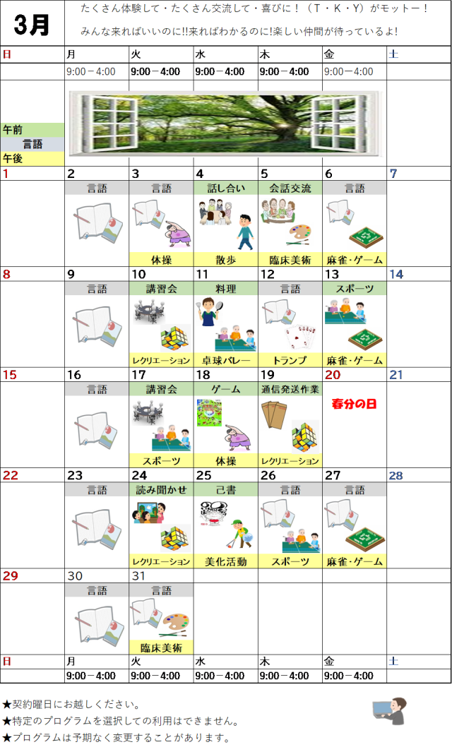 3月のプログラム表です。