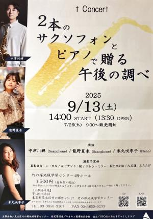 2025年9月13日T-コンサート 2本のサクソフォンとピアノで贈る午後の調べ &n...