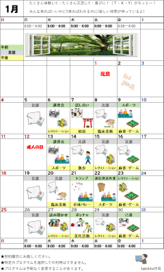 公開日:2025年12月19日団体からのお知らせNPO法人足立さくら会1月のプログラム表1月のプログラム表です。